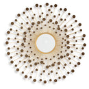 Light and bright, this accent mirror is a trendy take on wall decor. Its metallic spokes splay outward to create a sculpture-like frame. With goldtone and bronze-tone finishes, the piece is a reflection of your eye for contemporary design.